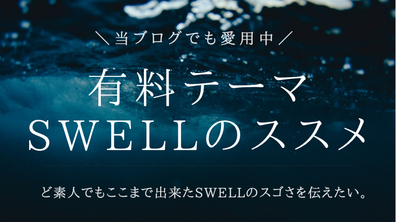 当サイトで使用している有料テーマ「SWELL」。ブログド素人、用語も分からない超初心者。無料テーマで手も足も出なかった私がSWELLの魅力を紹介します! -